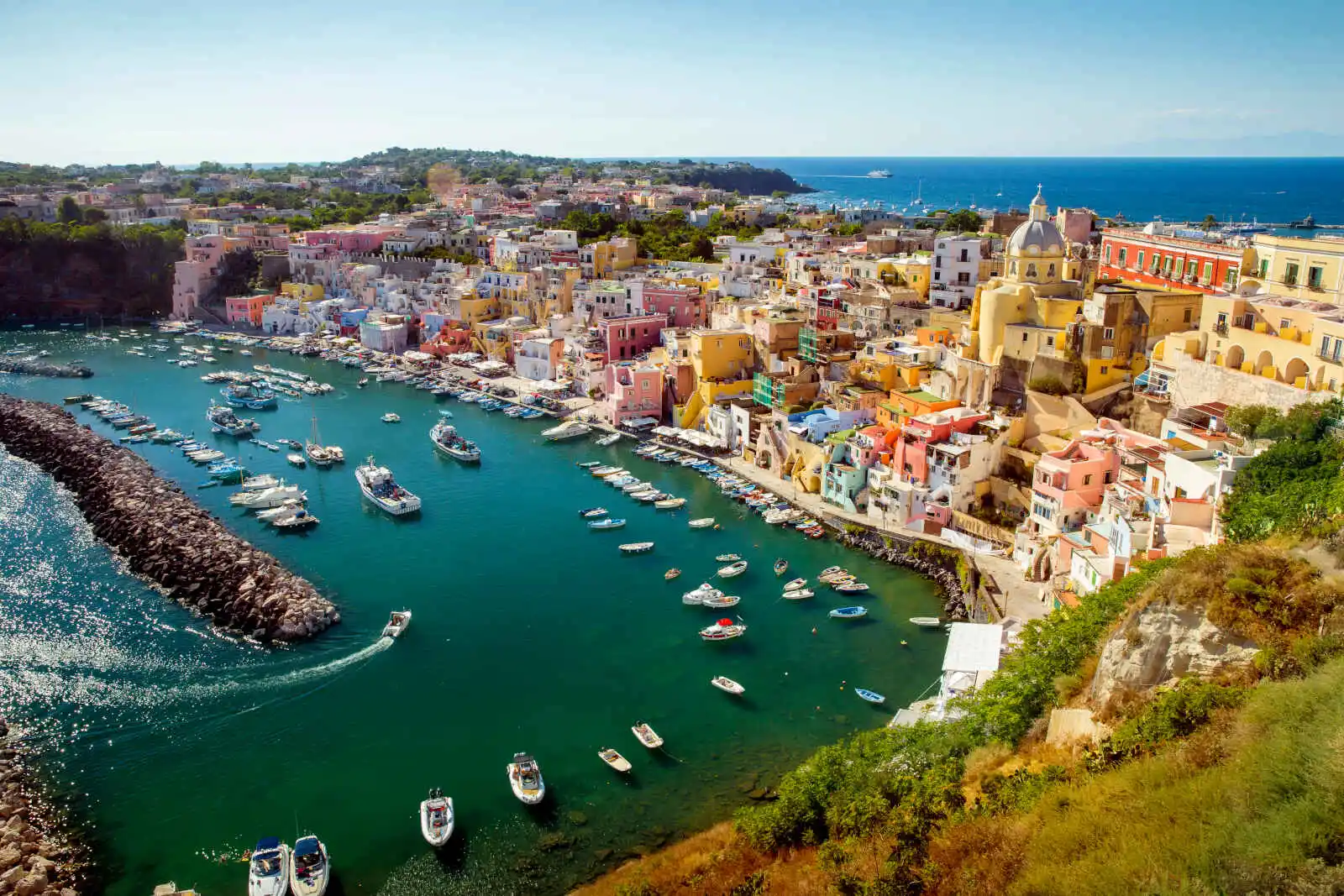 Rencontre avec votre guide puis rendez-vous à pied au port pour embarquer à bord d’un ferry : courte traversée jusqu’à Procida, la plus petite des îles de la baie mais tellement charmante. Visite du plus vieux village de l’île, Terra Murata, où l’on remarque le château et la prison. Arrêt indispensable à la marina de Corricella et son joyeux fouillis de maisons colorées. Déjeuner puis temps libre pour vous balader dans les ruelles pavées, bordées de citronniers et s’imprégner de l’atmosphère relaxante des lieux. Retour sur le continent. Fin d’après-midi et dîner libres. Nuit à l’hôtel.