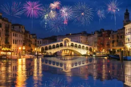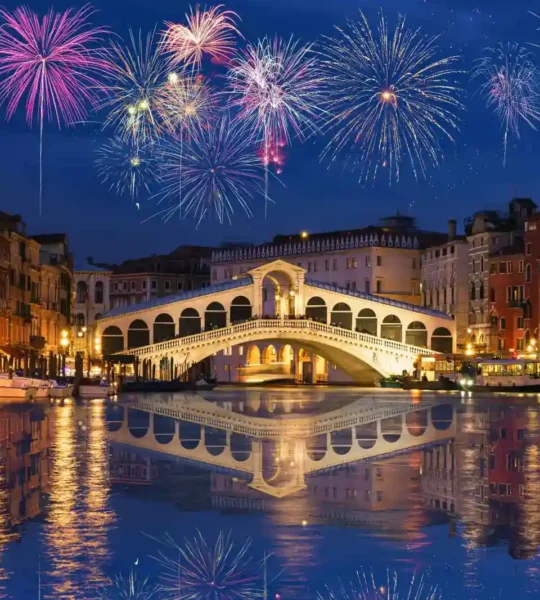 Rencontre avec votre guide puis départ pour la visite du quartier San Marco : le théâtre La Fenice, la place Saint-Marc, le campanile, la tour de l’horloge et la basilique ornée d’un quadrige de chevaux de cuivre rapportés de Constantinople. Visite intérieure du fastueux palais des Doges : la cour, le pont des Soupirs. Portes dérobées et passages secrets vous dévoileront d’impressionnantes salles ornées de dorures et de fresques dont certaines ont été réalisées par Le Tintoret. Cette matinée s’achève avec un apéritif dans un bacaro vénitien typique agrémenté de cicchetti. Déjeuner. L’après-midi, visite exclusive à travers les ruelles pour remonter le temps, s’attarder devant les façades et les petits ponts qui illustrent le mieux la vie d’antan. Au Palazzo Mocenigo (XVIIIe) qui appartenait à une famille noble dont furent issus plusieurs Doges, on pourra admirer au fil de salles richement décorées du mobilier d’époque, des costumes et une section dédiée au parfum avec une mise en scène permettant de sentir les fragrances. Dîner du réveillon libre. Nuit à l’hôtel.