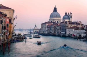 Vol à destination de Venise. Courte marche depuis l’aérogare jusqu’à l’embarcadère des vaporetti. Transfert en bateau vers l’île principale de Venise, dépose à proximité de votre hôtel puis trajet à pied jusqu’à votre adresse de séjour située en plein cœur du quartier San Marco. Aprèsmidi et repas libres. Nuit à l’hôtel.