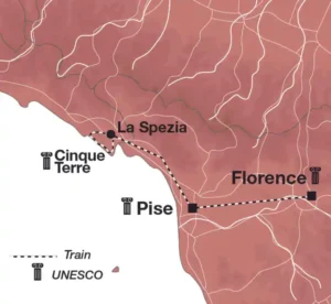 - Les trajets en train Florence-Pise-La Spezia-Pise en classe standard.