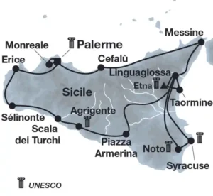 - Tarif de l’excursion en option à l’Etna le 4e jour, à régler sur place, donné à titre indicatif : env. 80 €/personne pour l’ascension en téléphérique suivi d’une balade en 4 × 4.