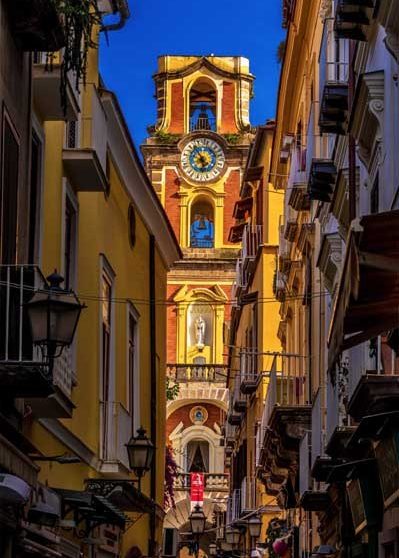 Dans la partie Nord de l'Italie du Sud, la ville de Sorrente s'étend, splendide, face à la mer. Elle est l'étape obligatoire avant d'arriver à Capri. Depuis les côtes de Sorrente, le voyageur apprécie la vue splendide sur l'île de Capri, sur les lueurs de Naples, au-delà du Golfe et sur les merveilles du Vésuve, au Nord Est de la baie.