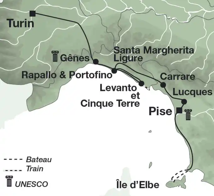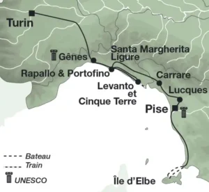 - Les taxes de séjour sont à régler sur place, env. 27 €/ pers. pour l’itinéraire en 7 nuits, 33 € avec l’extension de 3 nuits à l’île d’Elbe.