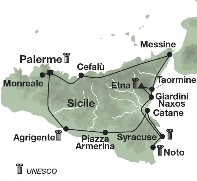 - Les hôtels sélectionnés pour ce programme disposent d’un parking (sur place ou à proximité) pouvant être payant, notamment à Palerme : env. 25 € par jour, à régler sur place.Formalités, nous consulter.