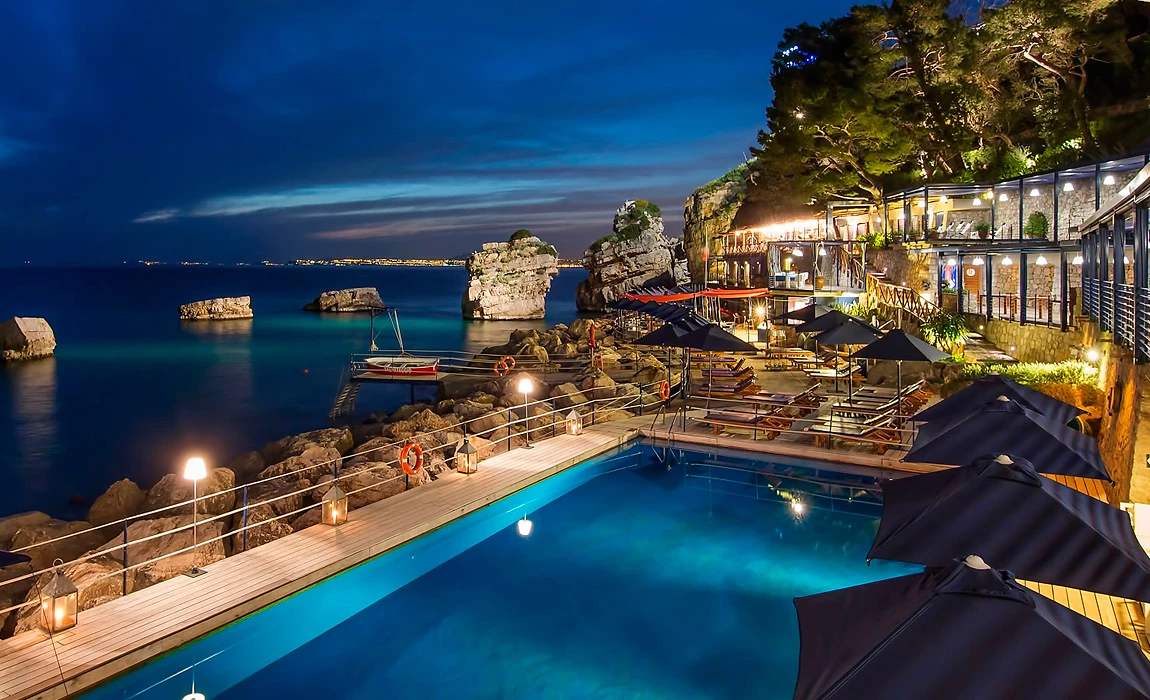 Petit déjeuner buffet. Le restaurant Maxi, récompensé par le guide Michelin, distille une atmosphère romantique pour vos dîners et éveille vos papilles avec ses mets originaux. La Taverna Nerea propose aux déjeuners des plats méditerranéens. Au bar Capri, on aime siroter à l’ombre une boisson fraîche, un cocktail… La cave à vin possède plus d’une centaine d’étiquettes de vins italiens et étrangers, de champagnes.