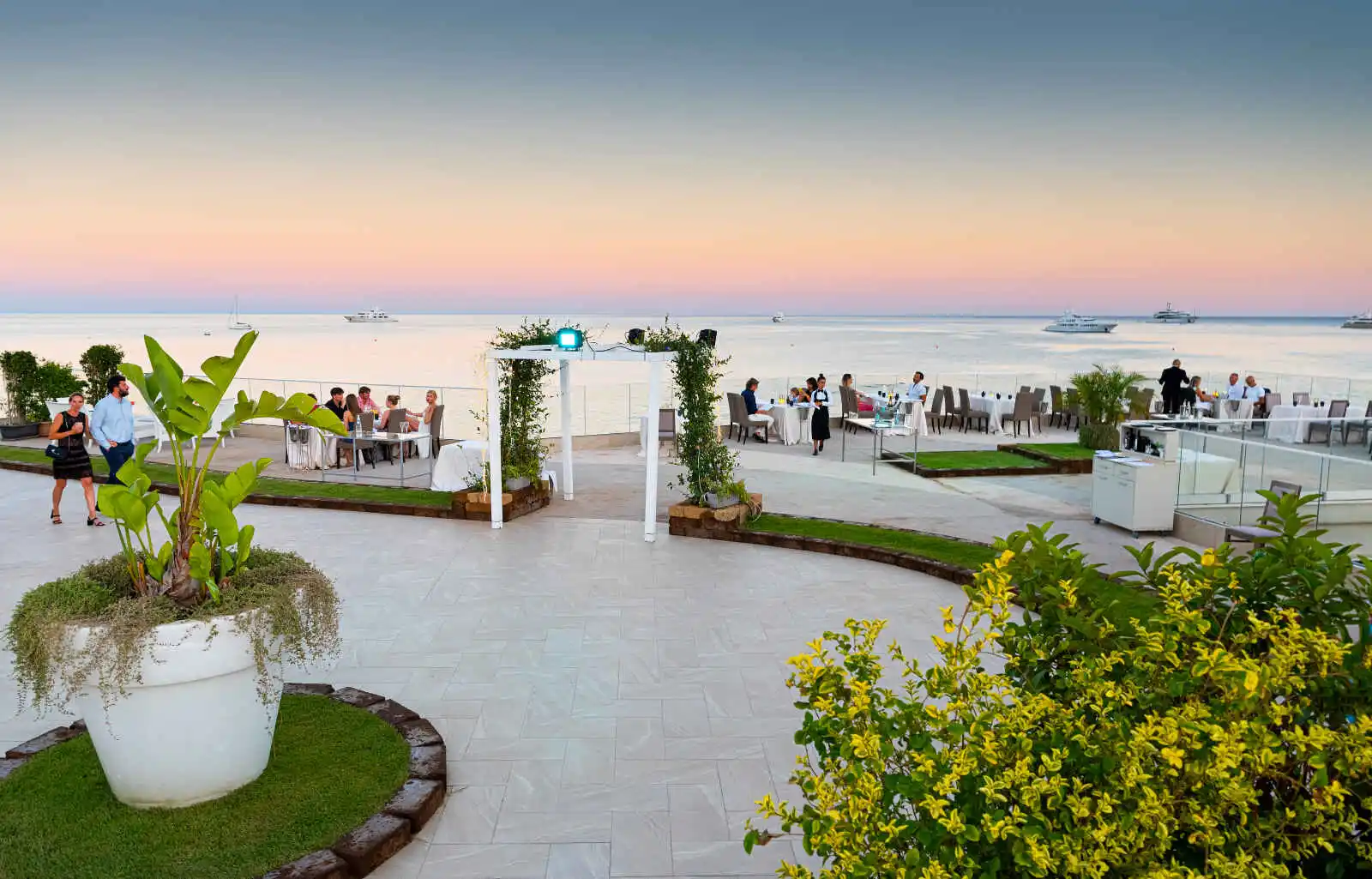 La demi-pension donne accès à 4 restaurants au choix pour le dîner (buffet et/ou menu fixe). Les boissons ne sont pas comprises à l’exception du restaurant Pineta où l’eau minérale et une demi-bouteille de vin par personne sont incluses. D’autres tables sont à votre disposition (avec supplément), tel le restaurant Belvedere, une table gastronomique et l’un des fleurons du resort. Par ailleurs, plusieurs bars servant cocktails et glaces dans un décor élégant, dont deux sont situés en bord de mer.