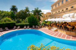 Des plages privées indépendantes de l'hôtel sont accessibles par ascenseur depuis le centre-ville ou à pied depuis le port. Les rares et petits espaces sableux sont complétés de pontons installés sur des rochers, donnant accès à la mer par une échelle et sont aménagés de transats (payants). Période d'ouverture de mai à octobre, en fonction des conditions météorologiques.