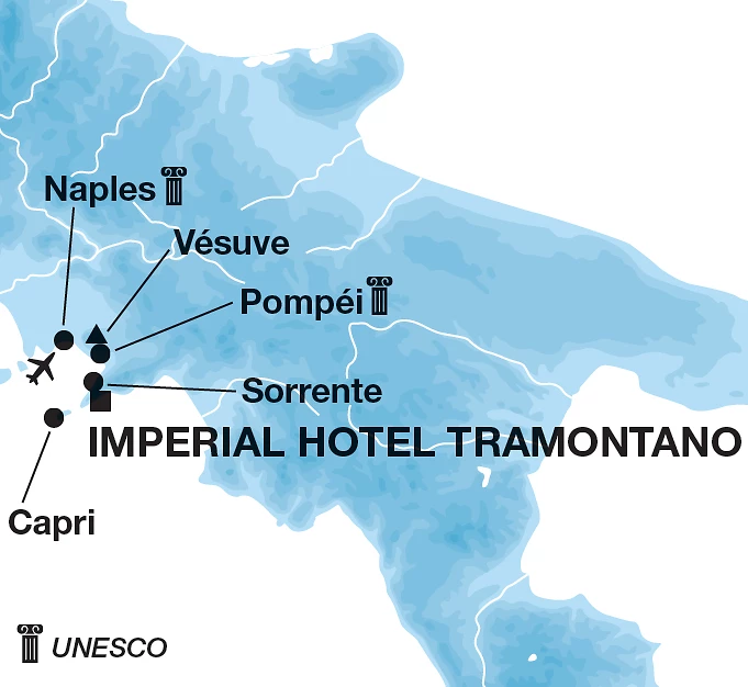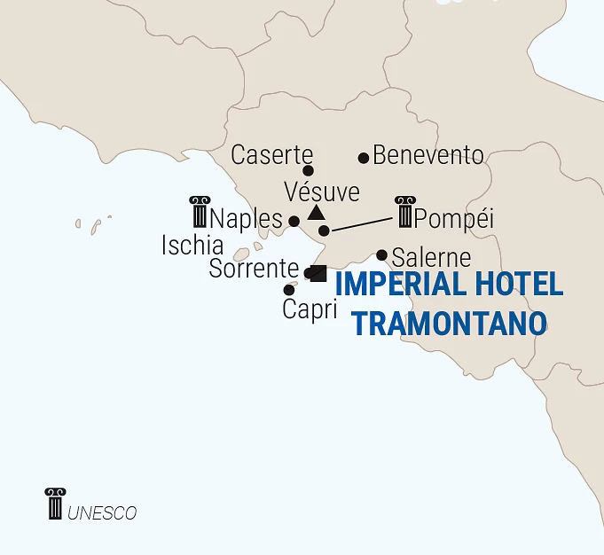Depuis la cour de l’hôtel, possibilité de rejoindre la chapelle Stella Maris du XVIe siècle, décorée de somptueuses fresques. De mai à septembre, un bateau typique de Sorrente (maximum 10 personnes) peut être réservé pour des excursions d’une demi-journée le long de la péninsule et du golfe afin de découvrir les plus belles baies et les criques cachées de la côte.