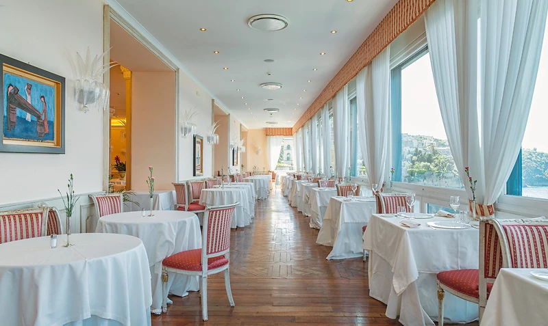 Le Belvedere, restaurant gastronomique avec grande baie vitrée ouvrant sur la mer, propose une cuisine méditerranéenne raffinée. La qualité des aliments utilisés est privilégiée afin de rester fidèle aux anciennes recettes du fondateur Alfonso Iaccarino, à l’image de ses fameux cannellonis. Le chef actuel puise une grande partie de son inspiration dans la nature et fait la part belle aux produits de saison. Grill méditerranéen et bar près de la piscine.