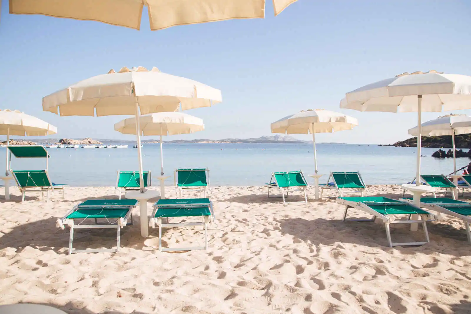 Plongée.Grande plage de sable clair, équipée de chaises longues et parasols sans supplément du 30 avr au 31 mai et en octobre, payant du 1er juin au 30 septembre : à titre indicatif, un parasol et 2 transats à partir de 25 € par jour en 2e rangée et 35 € par jour en 1re rangée.