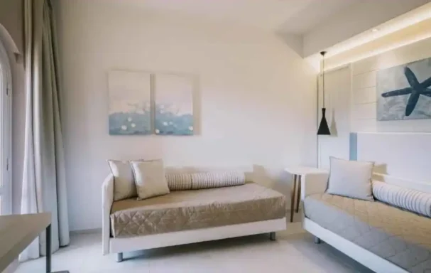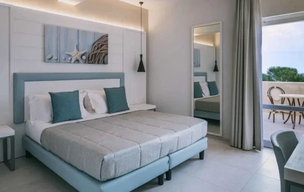 Les 345 chambres, réparties dans différentes bâtisses, affichent un style méditerranéen contemporain et lumineux. Elles sont toutes équipées de la climatisation, coffre, minibar, salle d'eau avec douche, WiFi gratuit et certaines s'ouvrent sur un balcon.