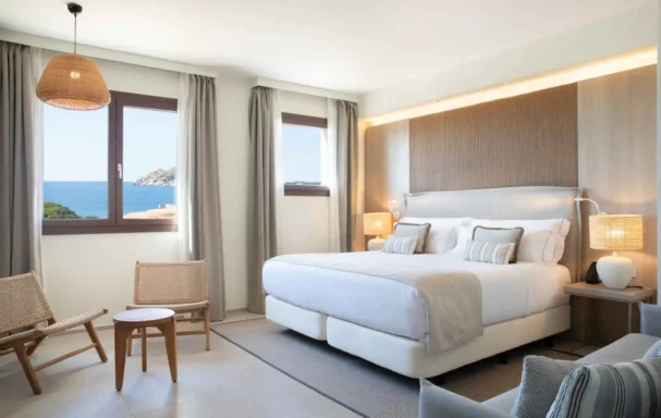Situé à l'extrême nord de la Sardaigne, à 1 h 15 de route de l'aéroport d'Olbia, ce resort, entièrement rénové en 2024, est posé au creux d'une baie protégée du vent et surplombe une plage bordée de maquis. Récemment labellisé Curio Collection by Hilton, il rassemble tous les atouts pour un séjour des plus agréables, grâce à ses équipements de loisirs et lieux de restaurations dédiés aux saveurs méditerranéennes.