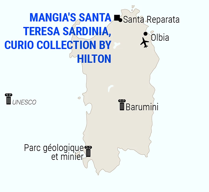 Une autre plage de sable se trouve à 800 m. Transats non réservables à l'avance. Prêt de serviette de plage (frais en cas de non-restitution). À proximité de cette plage, vous trouverez également un beach club indépendant et payant, proposant des prestations haut de gamme.
