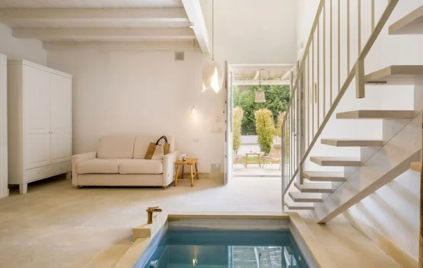 Situé à l’arrière du rivage adriatique, dans la pittoresque région du Salento, se dresse une authentique ferme du XVIIè siècle, transformé en charmant hôtel, dans le respect de son style d’origine. L’endroit est paisible, voire romantique, il conviendra parfaitement aux couples en quête d’un agréable pied-à-terre pour découvrir le sud des Pouilles.