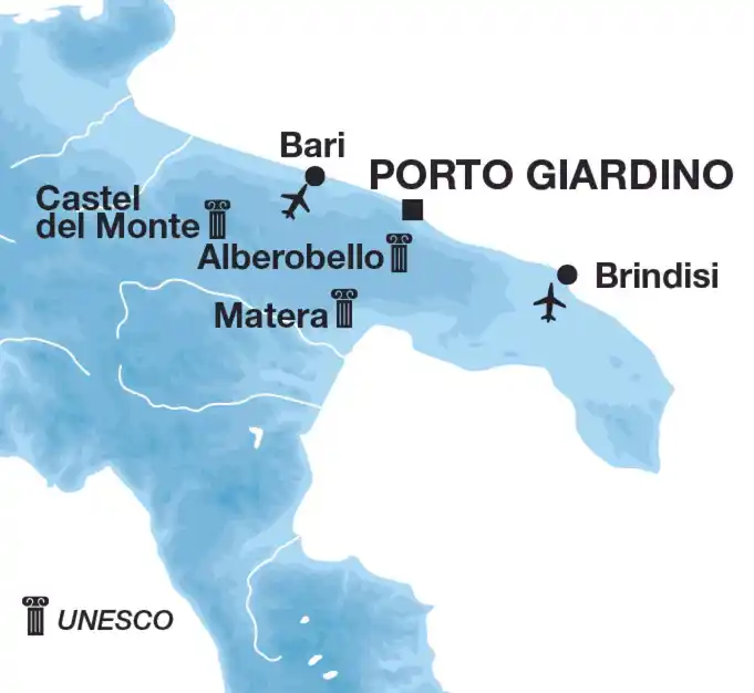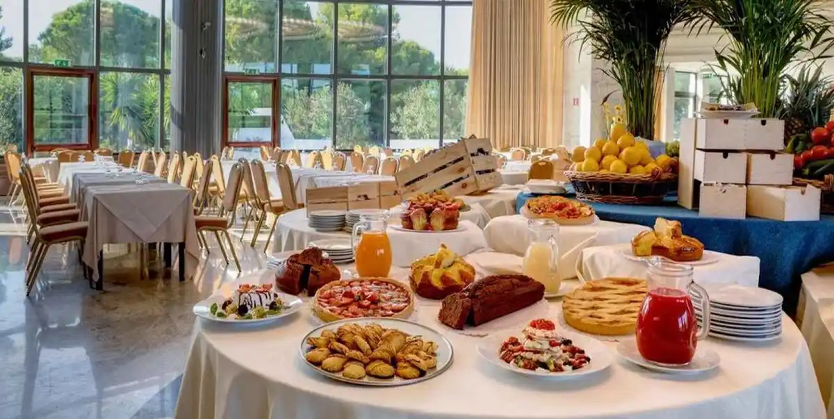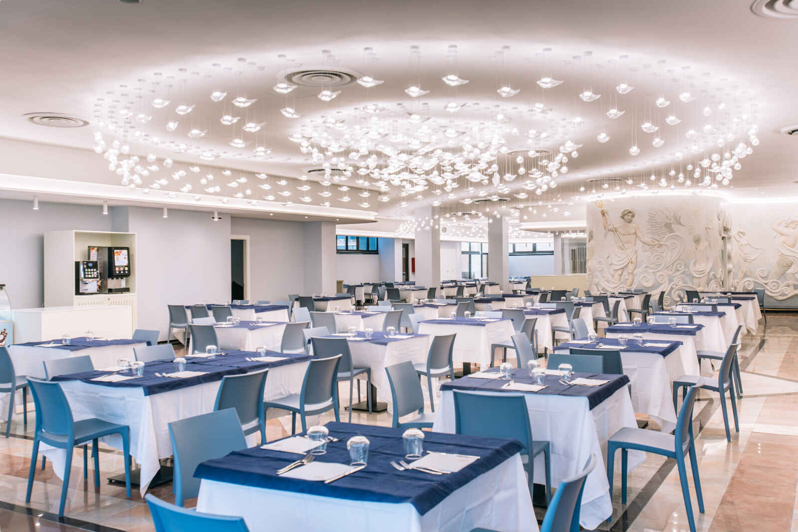 Le restaurant principal buffet sert une cuisine italienne et internationale, dans 2 espaces répartis sur 2 niveaux, et un dîner à thème apulien par semaine. Un restaurant végétarien ouvre pour les déjeuners et Il Pugliese propose un buffet de spécialités apuliennes au dîner (sur réservation).