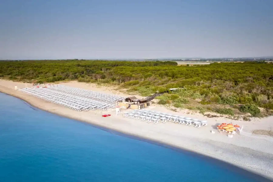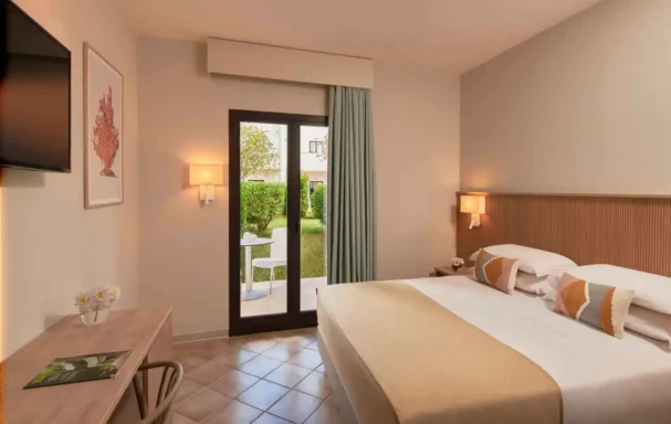 En traversant une belle pinède, vous rejoindrez la longue plage de sable fin qui descend en pente douce vers la mer. Navette à disposition entre l’hôtel et la plage.