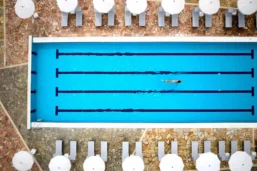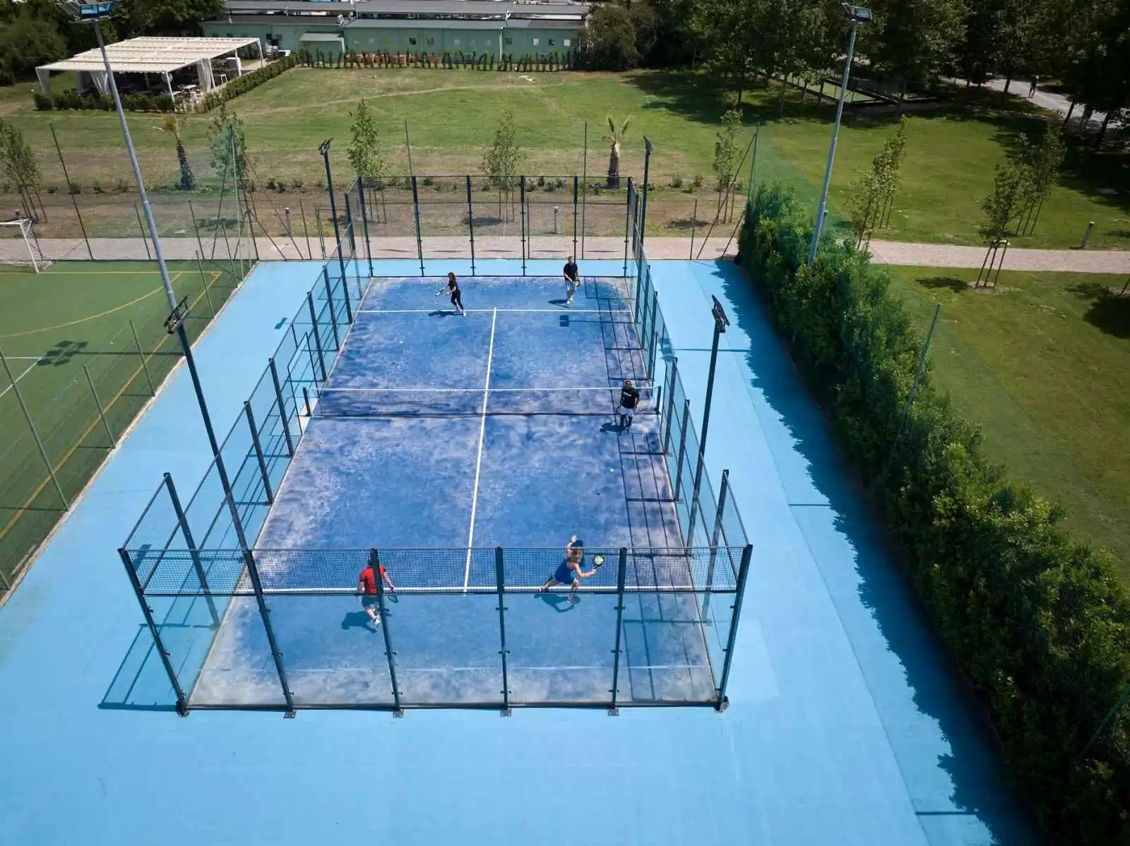 2 piscines dont une avec toboggan et jets de massage, une plus profonde pour nager. Il dispose d’une salle de sport, de courts de padel, terrain multi-sports (pour tennis ou football 5 à 8), table de ping-pong, mur d’escalade, tir à l’arc, terrain de jeux de boules, beach-volley, et d’un parcours gymnastique dans la pinède.