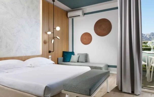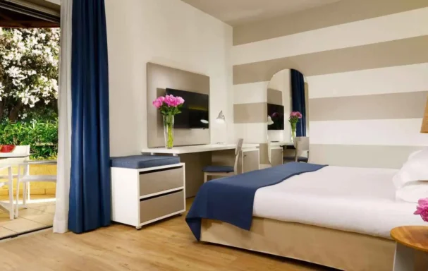 La bâtisse principale comprend 189 chambres avec balcon, la plupart sont orientées vers la mer (vue latérale ou frontale) et disposent de l’air conditionné ainsi que du WiFi gratuit.447 chambres dans de grandes villas de 2 étages sont disséminées dans le parc.