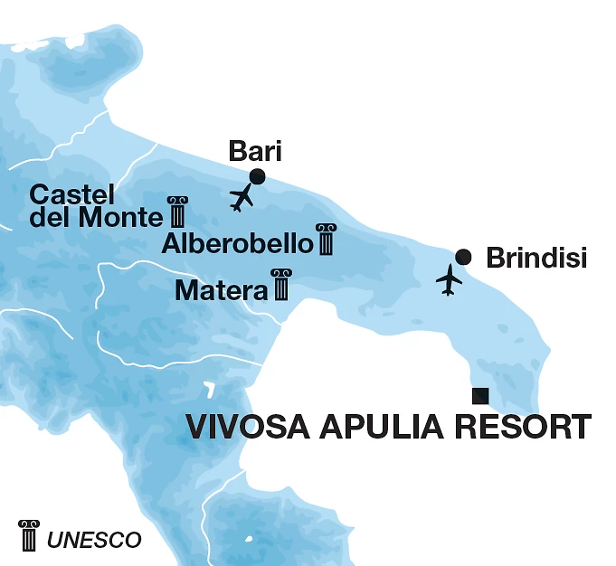 Le restaurant sert une cuisine apulienne et internationale sous forme de buffet, avec un corner dédié aux enfants. Possibilité de dîner au restaurant saisonnier ‘A Puteca (avec supplément). Plusieurs bars inclus dans la formule tout compris, plus le Damiano's Lounge Bar avec supplément.