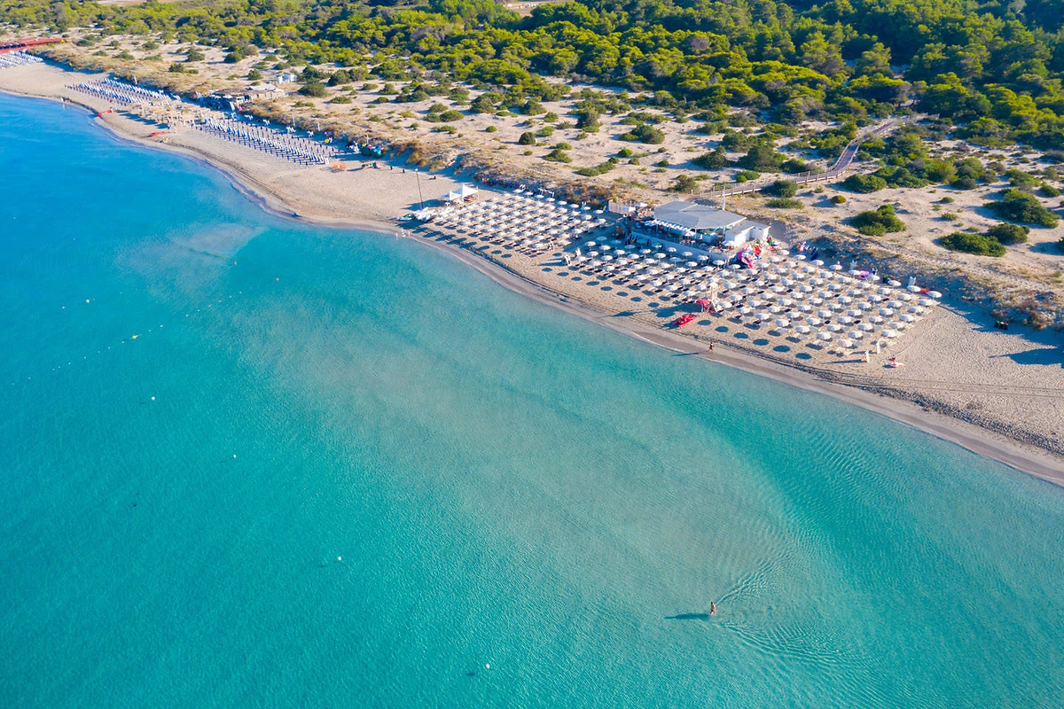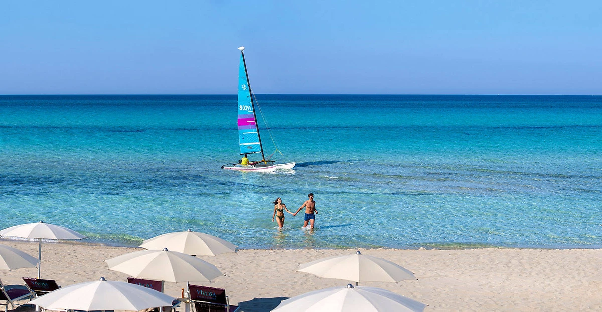 2 plages de sable blanc à 400 m accessibles par un sentier. Transat, parasol et serviette de plage inclus, selon la disponibilité sur les plages Scirocco et CocoLoco. Un bar sur la plage Scirocco.