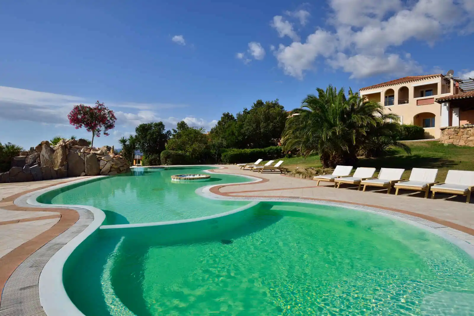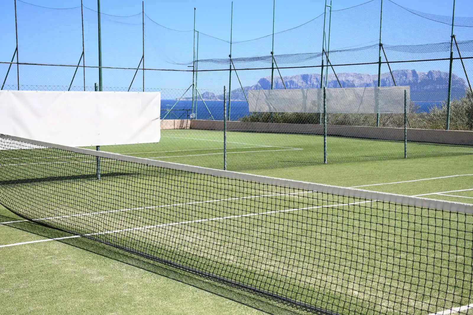 2 piscines dont 1 réservée aux activités. Deux courts de tennis, un terrain de foot, équipements de remise en forme extérieurs.
