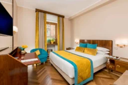 2 restaurants : assimo D’Azeglio, l’un des plus anciens restaurants de Rome, propose des recettes piémontaises et des plats du monde entier. Le Roof Garden au 10è étage procure une vue panoramique sur toute la ville grâce à de grandes baies vitrées et sert une cuisine moderne. Salle pour le petit déjeuner buffet. 1 bar .