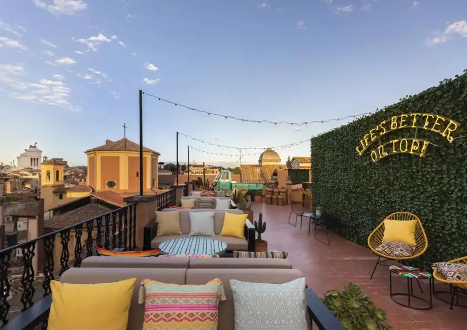 Aux beaux jours, le bar Hey Güey installe ses tables et fauteuils colorés sur le toit terrasse. Toute l’année, l’autre bar Hey Baby, sert des cafés et smoothies en journée et s’anime en soirée de cocktails Signature.