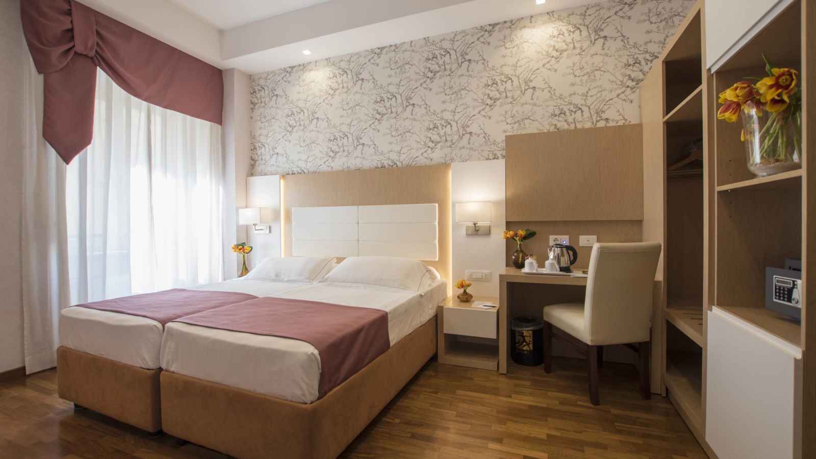 L’établissement Diana Roof Garden propose 165 chambres très bien équipées et décorées dans des tons chauds dans un style purement romain avec du mobilier en bois et de grandes fenêtres pour une belle luminosité.