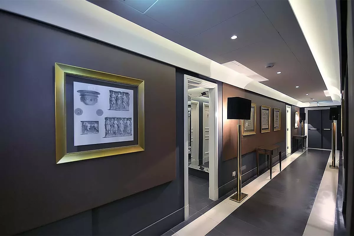 À l’arrière du vaste lobby, un piano-bar, un salon en mezzanine permet d’observer la rue. Au dernier étage, un bar intime et le restaurant se prolongent sur une véranda avec vue panoramique sur la ville.