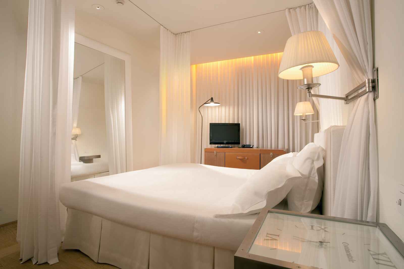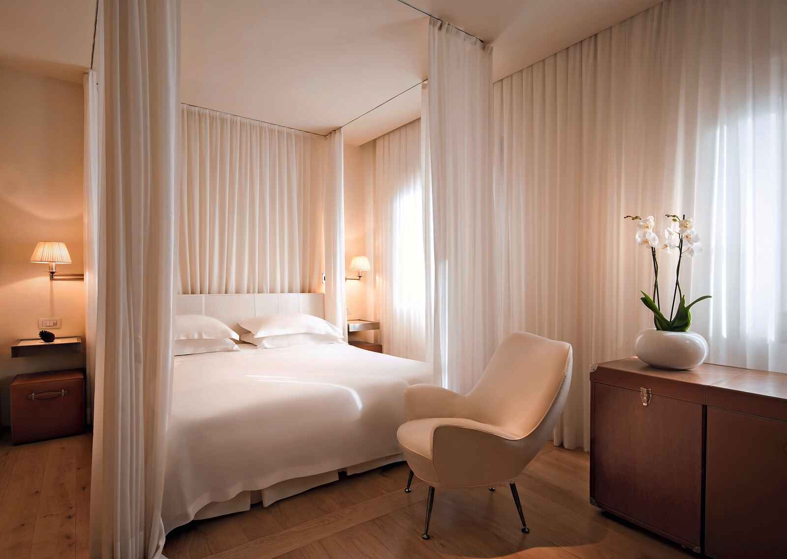 L’établissement propose 43 chambres et suites spacieuses, décorées dans des tons blanc et beige et pourvues de parquet et de meubles en cuir faits main. Elles disposent toutes de la climatisation et d'un accès WiFi ainsi que des produits de toilette Salvatore Ferragamo.