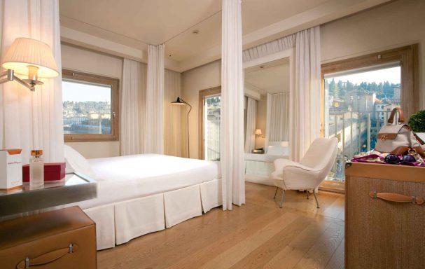 Au-delà de son emplacement privilégié au bord de l'Arno et à quelques pas du Ponte Vecchio, l'hôtel Continentale saura aussi vous séduire par son design moderne et son élégance. Sa décoration raffinée typique des années 1950 signée Michel Bönan, célèbre architecte florentin, vous charmera tout autant.