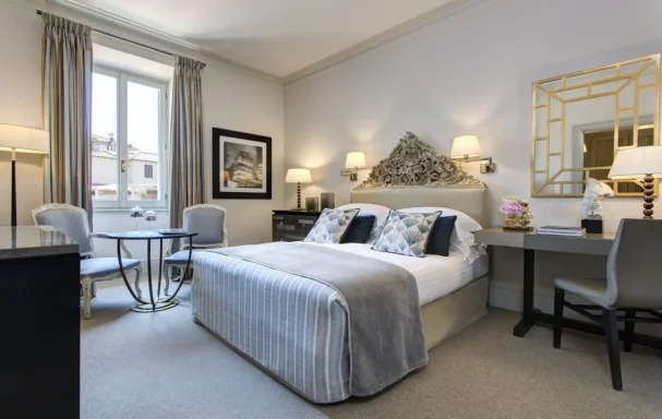À l’heure de se mettre à table, direction Le Jardin de Russie, le restaurant gastronomique de cuisine italienne de l’hôtel. On s’attable dans la superbe salle à manger à la décoration très classique ou à l’extérieur sur la terrasse posée dans un superbe jardin. Un cadre unique dans le centre de Rome. Dans l’assiette, le chef Fulvio Pierangelini revisite avec talent et audace les grands classiques italiens. Pour boire un verre, on trouve en contrebas le bar Stravinskij. Un havre de paix dans la capitale italienne et un endroit de rêve pour un Signature Stravinskij Spritz ou un martini artisanal.