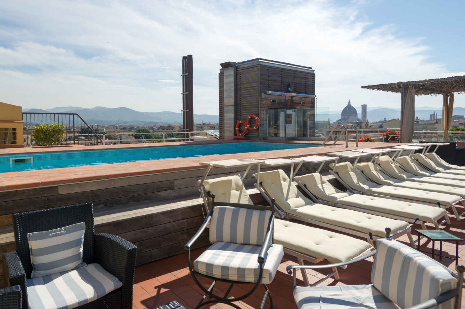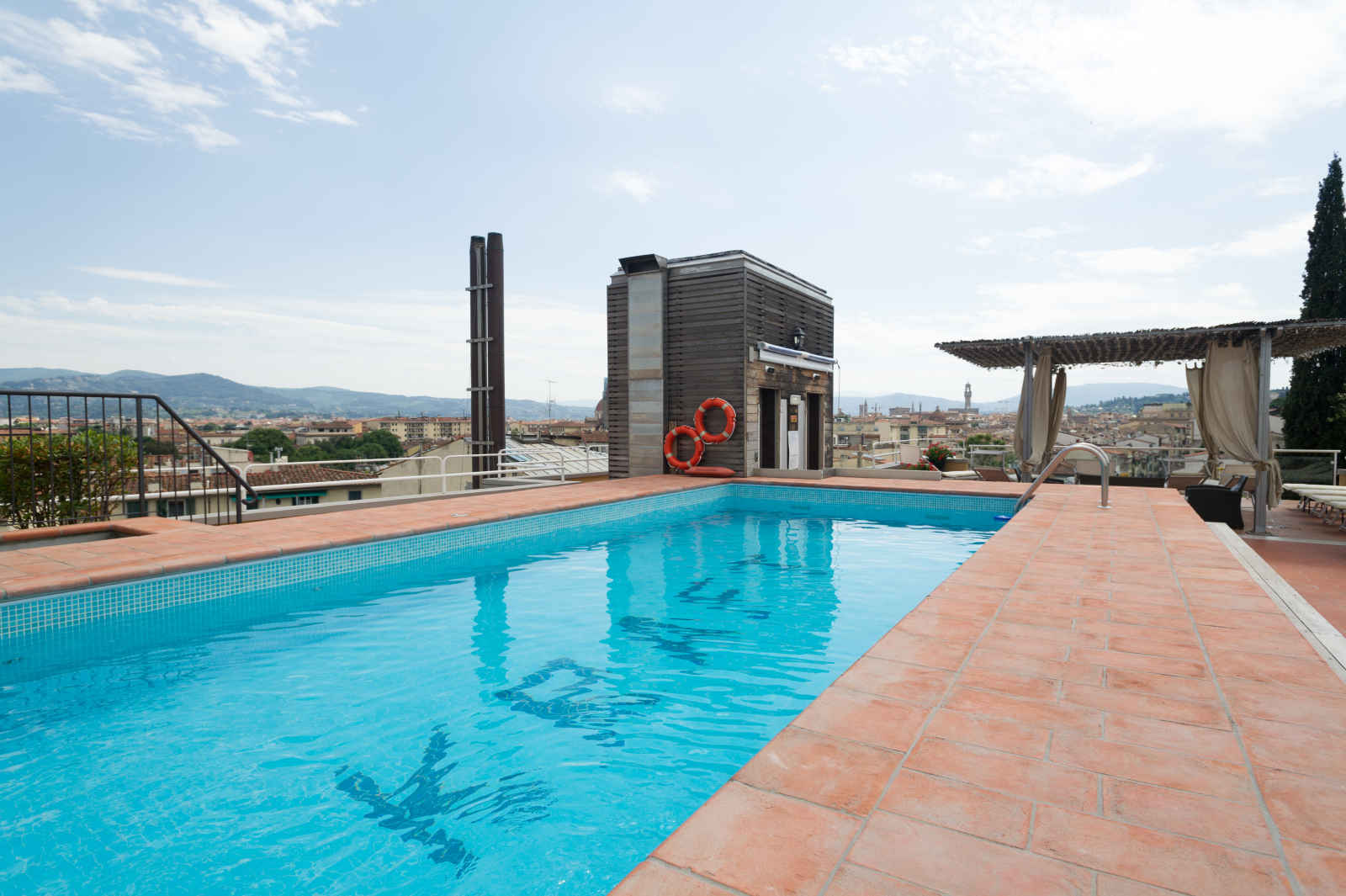 À 150 m des rives de l’Arno, dans un quartier résidentiel du centre historique de Florence, l’Hotel Kraft allie les styles anciens et modernes. C’est surtout l’un des seuls établissement de la cité toscane a posséder une piscine chauffée, située sur la terrasse du cinquième étage à côté du restaurant.