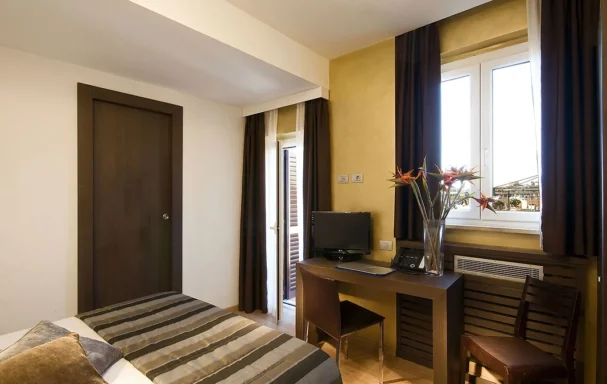 Situé à quelques dizaines de mètres à peine de la célèbre fontaine de Trevi, cet hôtel occupe un immeuble historique du XVIIe siècle, dans une petite rue pavée, typique du centre de Rome. Depuis le hall d'accueil jusqu'aux chambres, l'établissement affiche une décoration contemporaine agréable dans les tons bruns.