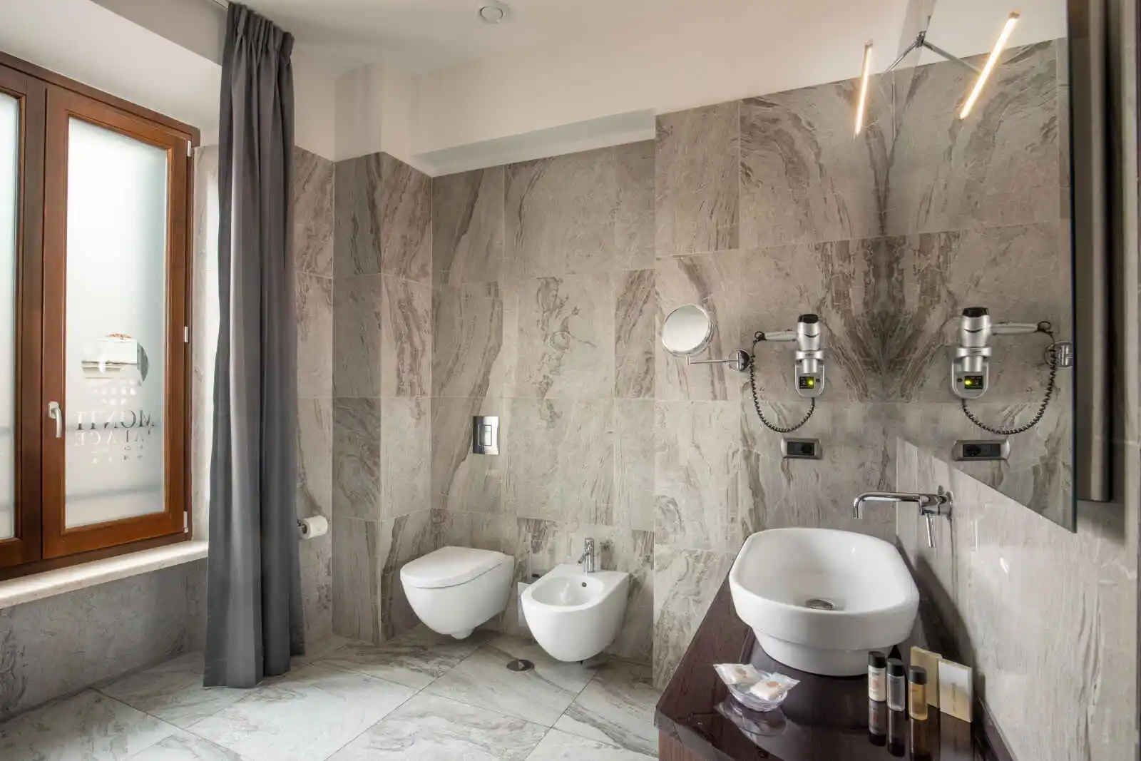 Le Monti Palace propose 55 chambres de standing récemment rénovées dans un esprit contemporain élégant et équipées de double vitrage, WiFi gratuit, prise USB et nécessaire à café/thé.. Certaines chambres sont accessibles aux personnes à mobilité réduite.